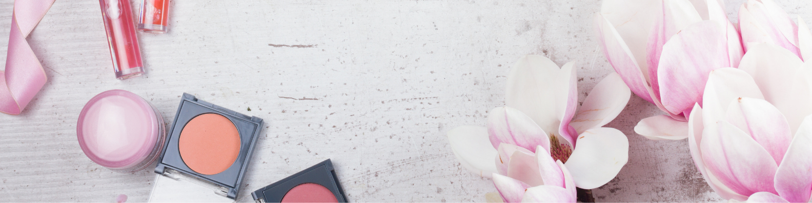 Perfectly represent the beauty and cosmetology industry with bright, warm images of flowers, makeup, and greenery. Backdrops of marble and white wood also suggest luxurious treatment.